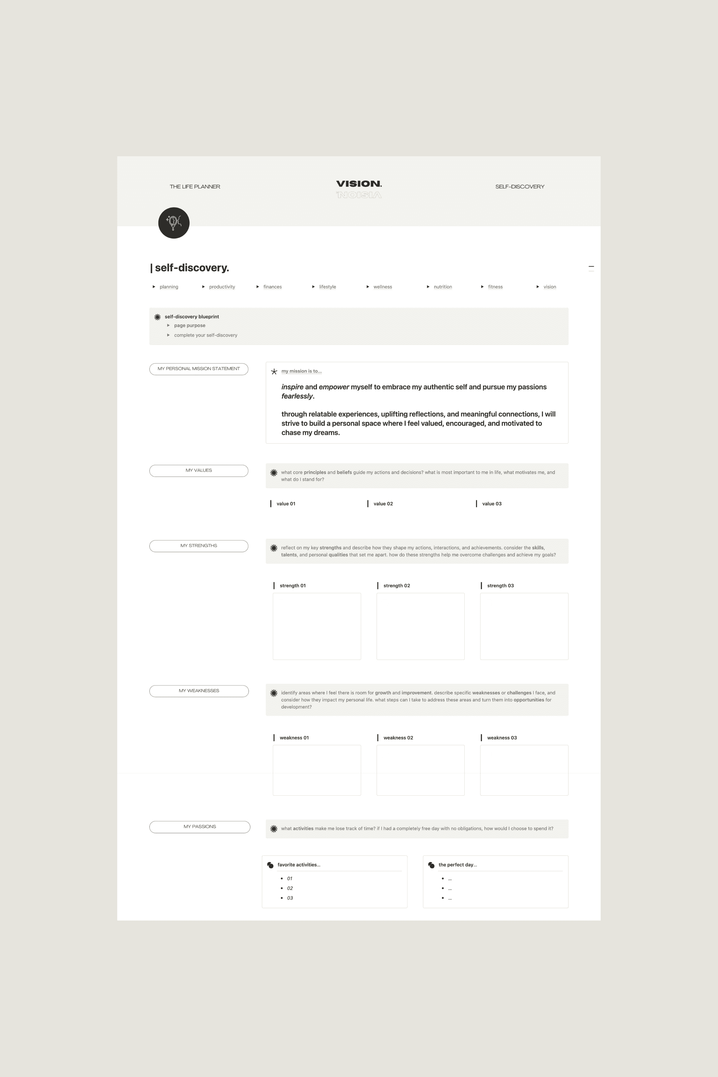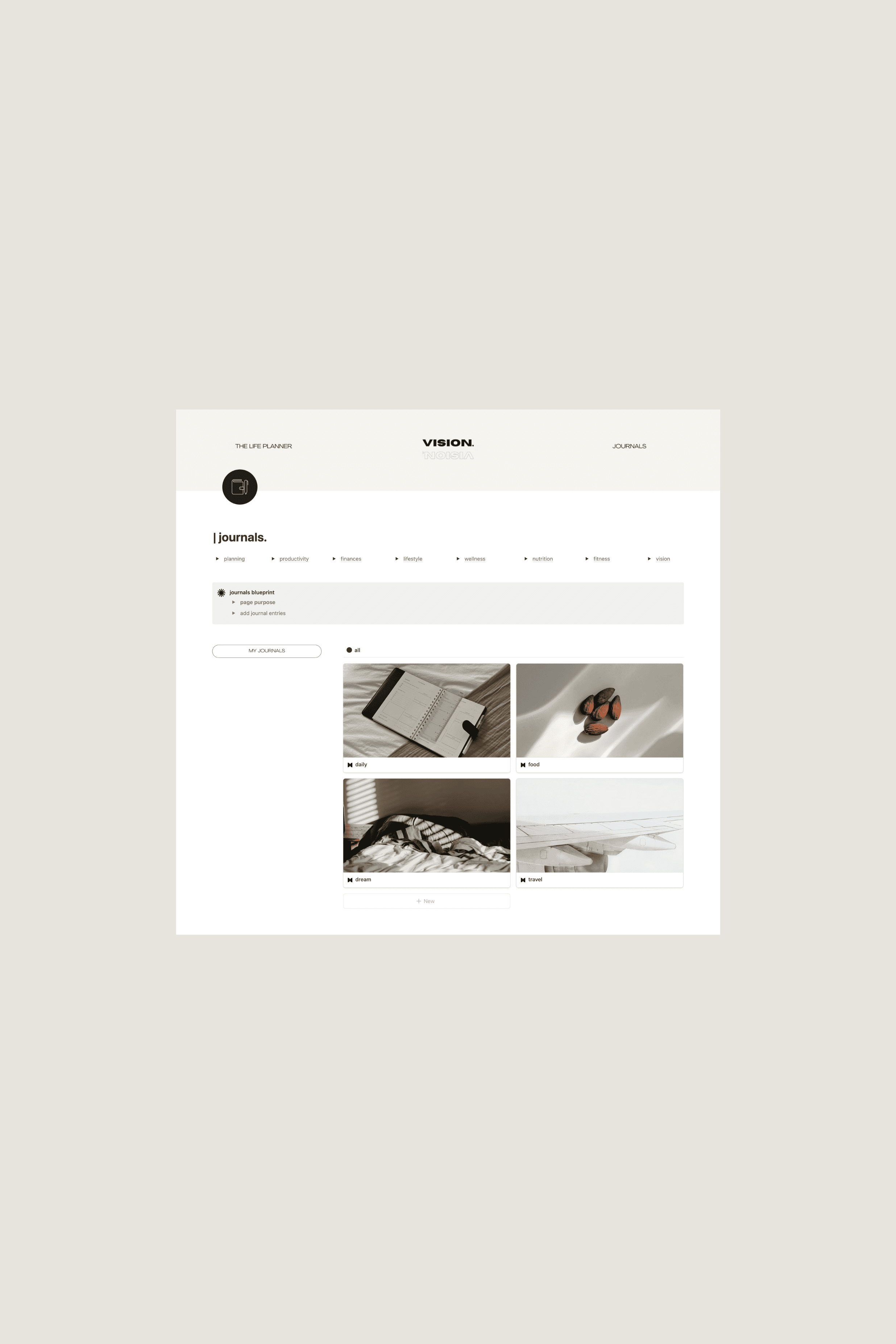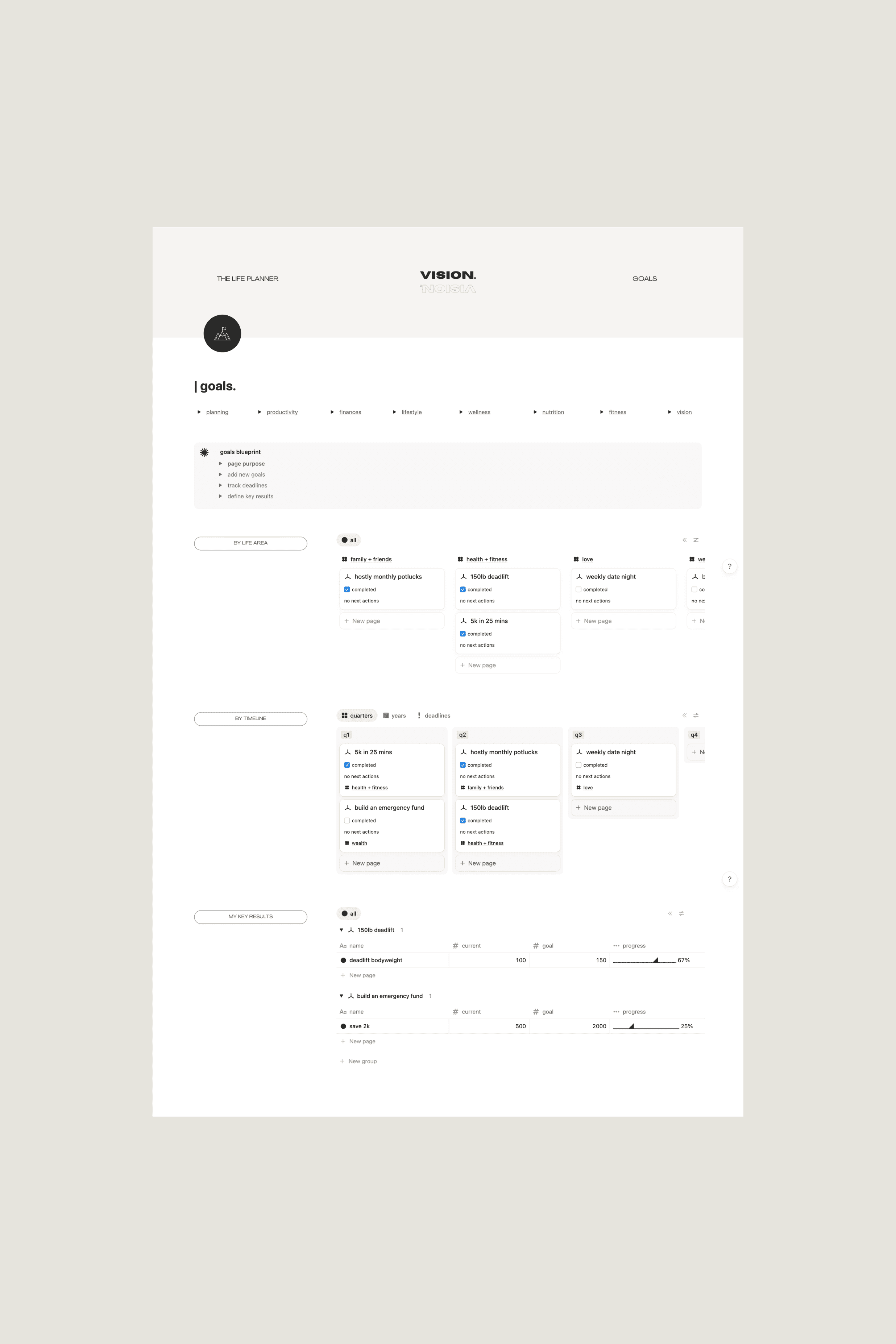 Most of us carry our biggest dreams in the least structured way – a note here, a passing thought there. Built in Notion, The Vision Planner gives your inner world a beautiful digital home.